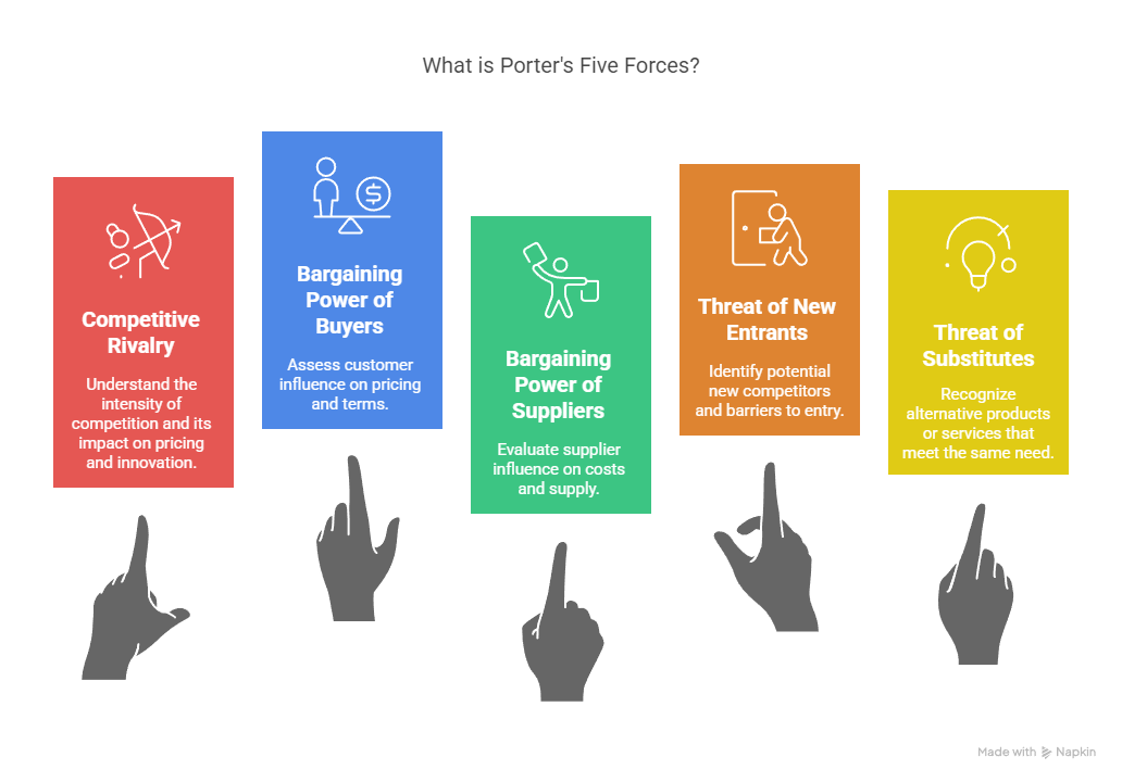 Whether you’re a student just stepping into the world of business, a startup founder evaluating your first business opportunity, or an aspiring strategist trying to sharpen your analytical edge, Porter’s Five Forces offers an intuitive yet powerful structure. Let’s break it down clearly and simply so you can start applying it today. Understanding what is Porter’s Five Forces can give you clarity in evaluating any competitive environment.